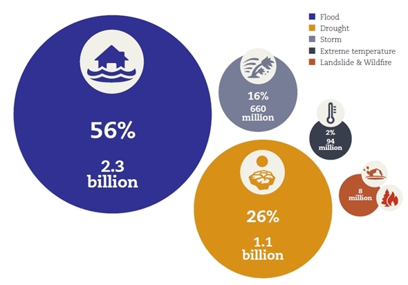 過去20 年間、世界で最も影響をおよぼしている自然災害は「洪水」