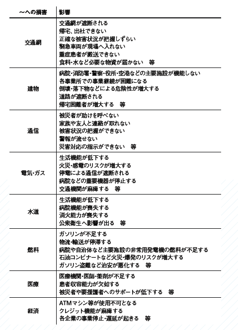 次に災害発生時のインフラに対する影響を検証してみよう。