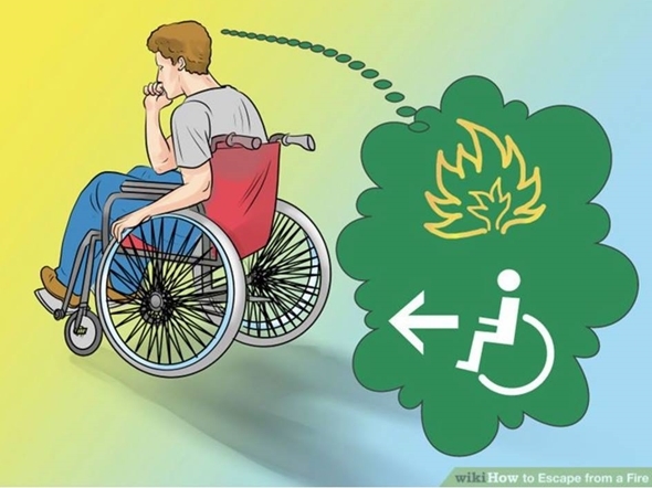なお、超高層ビルは大きく揺れるため、すぐに階段を降ろさずに介助者は身の安全を公示ながらもタイミングを見計らい、壁の手すりなどに車いすの強いフレーム部分をベルトなどにより強く固定することも一案だと思います。施設の事情によっても異なると思いますので、実際に車いす利用者が乗車状態で試してみて下さい。