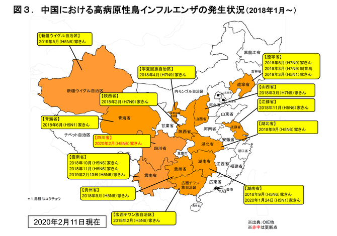渡り鳥を介して、中国国外にこの高病原性を獲得したウイルスが広がることが強く懸念されています。幸いなことに、中国から国外へこのウイルスが広がったという報告はまだなされていません。またこの冬、このウイルス感染による中国国内での人の感染事例はまったく報告されていません。