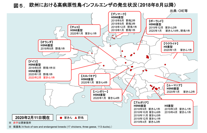 一方、アフリカ[図1]のほか、旧東欧を中心にしたヨーロッパでも発生が続いています[図5]。特にアフリカでの発生は注目されます。[図1]からは発生した国は限定されていますが、他のアフリカの国々では情報がなく、実際に発生しているのか否かわかりません。