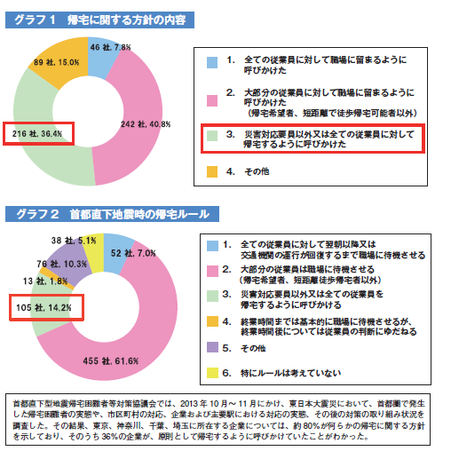 帰宅困難者の発生を抑える上で最も重要なのが「一斉帰宅をさせない」こと。