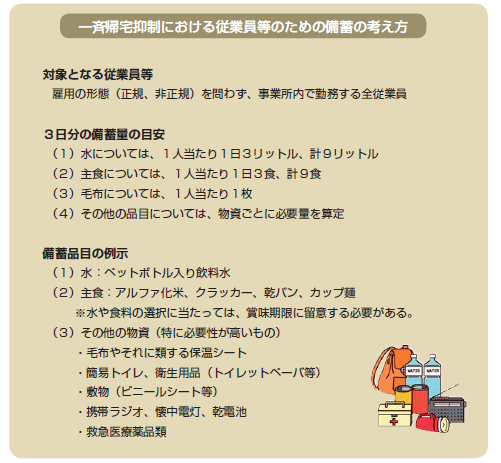 一方で、企業からは、具体的な数量として水が3リットル、毛布が1人1枚などと示されたことについて、「スペースがない」「資金的にも負担が倍増する」などの懸念も出ている。