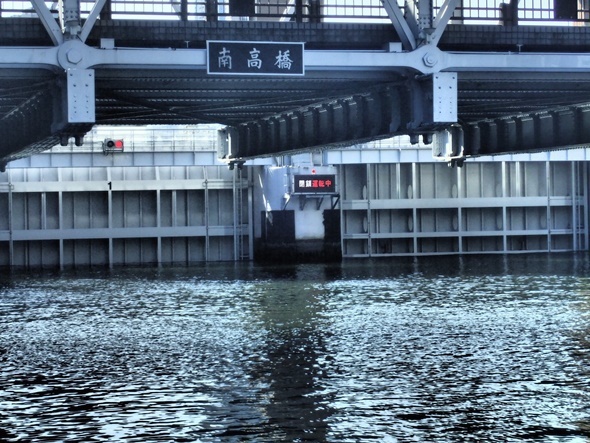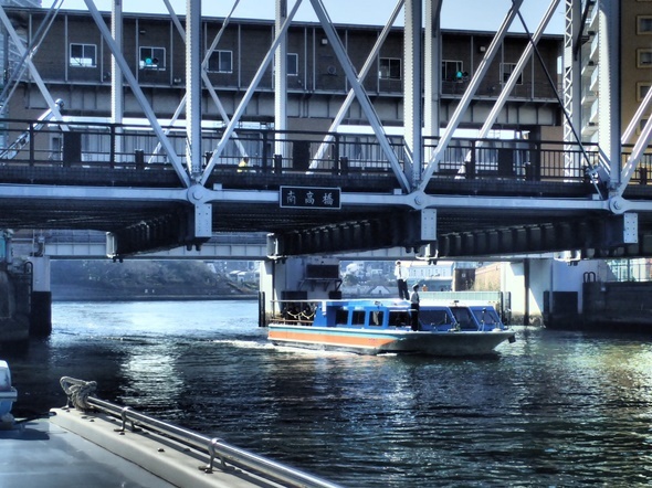 隅田川を航行する水上バスが乗客を乗せ、墨田区の両国船着場を出発後に震度6強の地震が起こり津波警報も発表されるという想定。水上バスは近くの亀島川に退避し、退避完了後に亀島川水門を閉鎖した。