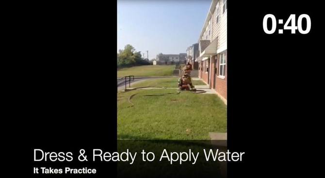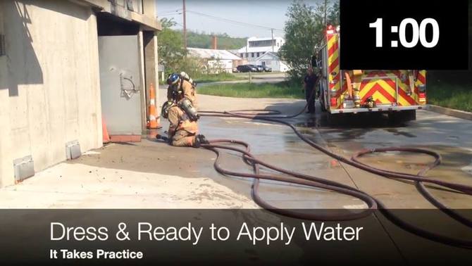 現場到着から1分以内にフル装備で放水開始することをゴールにする。