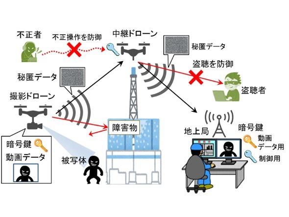 ドローン動画、暗号鍵で傍受防ぎ送信