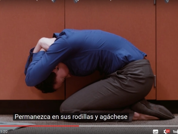まず、1番目のDrop(伏せろ)の意味は、「あごを引き、顔を下にして体を丸くする」ことで、「大切な内臓の損傷を守れ」という意味と 「揺れで体を飛ばされるな」「転倒を予防しろ」という意味があります。