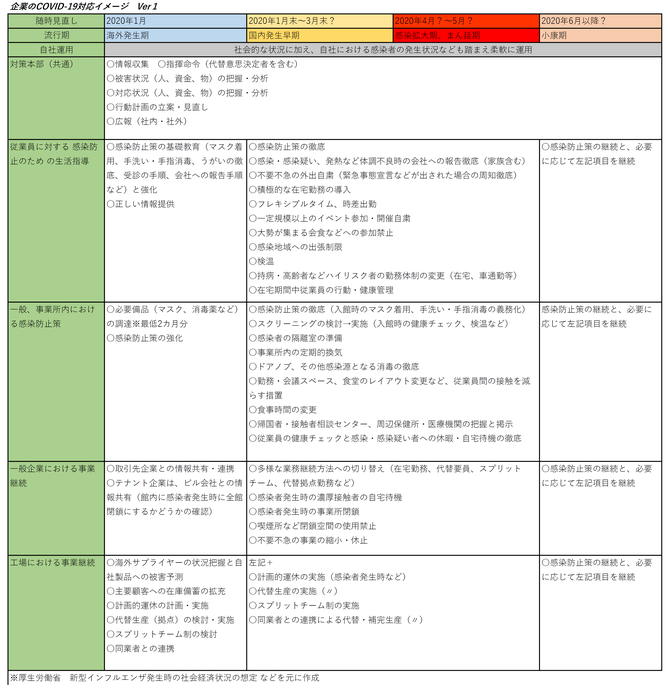 感染状況に応じた企業の対応イメージを一覧にしてみました。