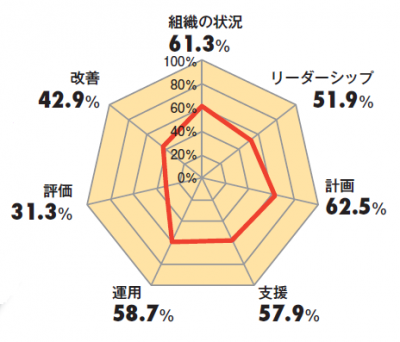 結果は、第9章(評価)と、第10章(改善)に該当する質問について、ほとんどの企業で取り組まれていない傾向が顕著に表れた。その要因として、4章から第7章の計画策定の段階においても、第BCMSの目的や目標がしっかりと定義されていないこと、利害関係者が明確になっておらずニーズが完全に把握できていないこと、リスクの許容基準や許容可能レベルがトップによって定められていないこと、誰がいつまでに何をするのかなど達成計画やBCMSに必要な資源が明確になっていないこと、などの課題があることもわかった。