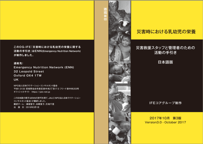 OG-IFE(=災害時における乳幼児の栄養 災害救援スタッフと管理者のための活動の手引き)日本語版は、こちらからダウンロードしていただける、このようなものです。