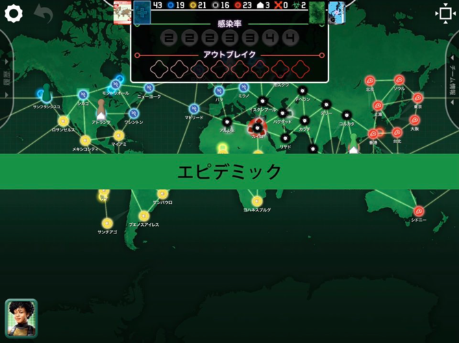 ゲーム中、エピデミックのカードを引いてしまうと新たな都市で感染拡大してしまうし、一度感染が広がると、周辺地域にどんどん広がっていってアウトブレイクが始まってしまいます。クラスターを放置すると、本当にあっという間に手がつけられなくなる様は、これから起こり得る現実を見ているようで怖いです。