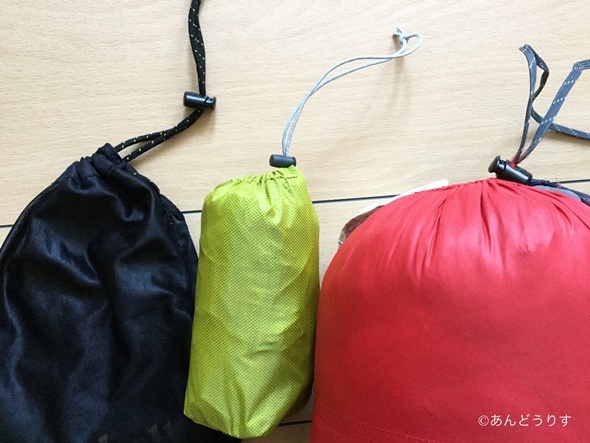 「ザックにそんなにたくさん荷物が入っていたの」?とよく驚かれますが、それというのも、このドローコードつき収納袋のなせる技が大きいのです。