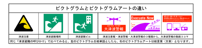 ピクトグラムアートは、「気象庁 津波警報・注意報、津波情報、津波予報について」を参考にしています。
