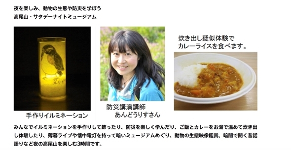 まずは、こちら。「高尾599ミュージアム」で開催された、「高尾の夜を楽しみ、動物の生態や防災を学ぼうサタデーナイトミュージアム」。