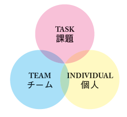 つまり、災害対応それ自体は達成すべき課題である(TASK)。災害対応は一人では決して行えないので、対応にあたる組織を束ねねばならない(TEAM)。また、多くの災害時には被災者のみならず、災害対応にあたる個人も高いストレスを抱えているため、組織を構成する個人への配慮も重要になる(INDIVIDUAL)。