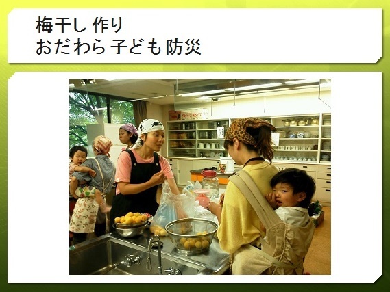 「おだわら子ども防災」さんは、2011年10月11日に地震や津波からわが子を守るにはどうすればいいの?という思いから設立された団体です。防災講座を実施するだけではなく、誘い合って梅干し作りも実施しています。