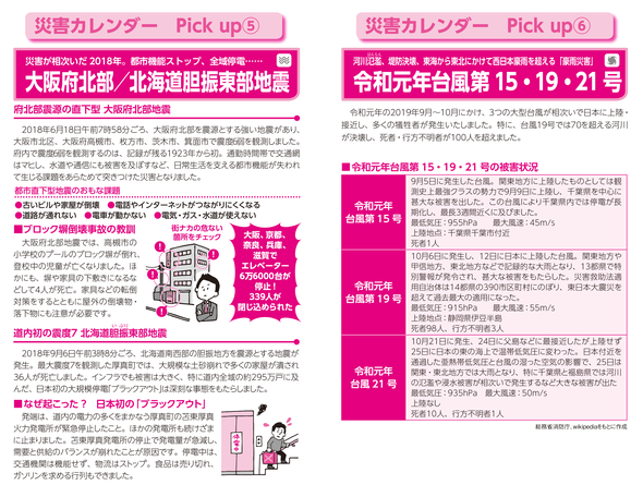 巻末には、学んだことをおさらいできる「防災イマジネーションゲーム」を掲載。防災の取り組み状況が診断ができるチェックシートも新たに掲載しました。付録の『防災ポケットBOOK』には、防災の豆知識や過去の災害の教訓を落とし込んだダイアリーやカレンダー、あったら役に立つアイテム、いざというときの連絡体制・連絡先を書き込めるメモ帳を載せています。