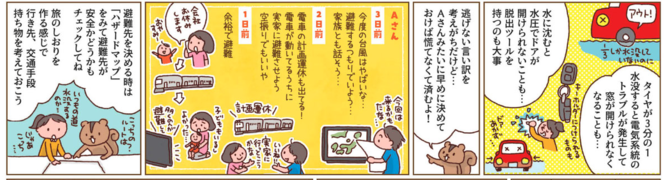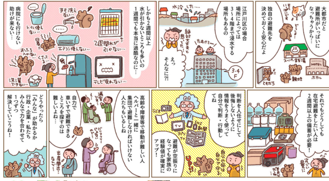 「防災は今日を愛し、明日に備えること」というフレーズがすごくステキだと思いました。生活を含め、生きていることそのものが防災ですよね。今日を愛し、明日に備える気持ちが詰まったマンガ、ぜひご活用くださいませ。