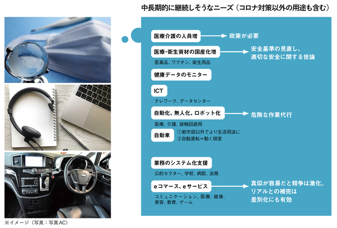 こうした動きは、現在のところは、感染症対策としてとりあえずやらなければならないという位置付けのなかで顕在化しています。今後はこのなかから、短期的に終わるもの、ニューノーマル(新常態)となって中長期的に続いていくものが分かれていくでしょう。