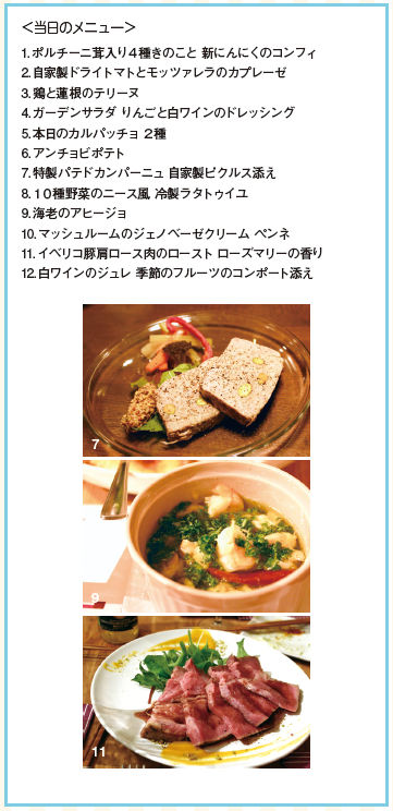 反省点:あえていうと、食の細い人にとっては品数が12品と多すぎたことでした。
