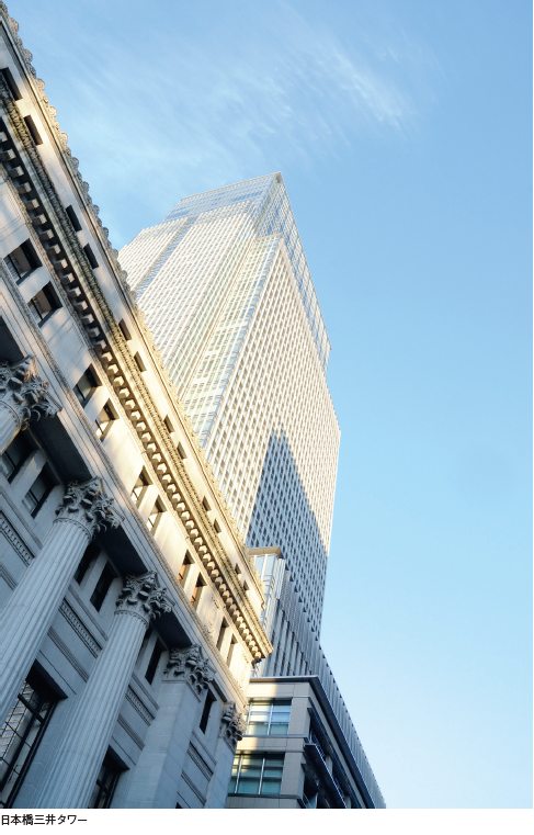 改修するのは、霞が関ビルディング(1968)、新宿三井ビルディング(1974)、三井本館(1929)日本橋一丁目ビル(コレド日本橋、2005)など。