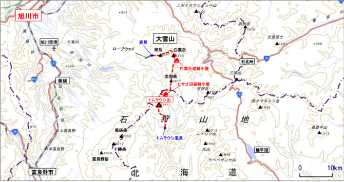 東京の旅行代理店が企画した2泊3日の大雪山系縦走ツアーに参加したのは、50~60代の男女15人であった。ツアーガイドは3人で、他に途中までネパール人のシェルパ1人が同行した。図3に、縦走コースの概要を示す。