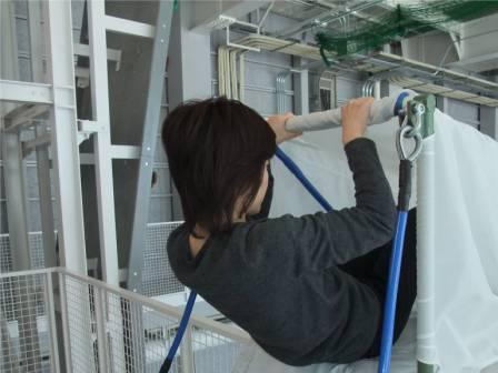 ホテルやマンションには高層階から脱出するための避難具がありますよね。それを、体育館の2階部分という高度がちゃんとある場所で体感できるのです。クライマーなら絶対体験してみたかったものなので、もちろん体験してきました!