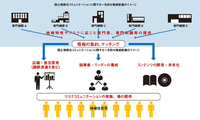 たとえば、国民に防災教育をするとしても、講師の派遣や教材の手配なども含め、一元的に対応できる組織がないと、国全体の取り組みとして機能することはないという考えだ。レジリエンスに関連した教育について問い合わせたいときには、このセンターに連絡するだけですべて解決できるコミュニケーションセンターとしての機能を持たせ、継続的な取り組みを支援する。