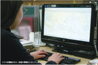 世界各国に事業拠点を持つ日立製作所では、早くから海外における危機管理体制を整備してきた。リスク対策部が中心となり、1日80~100件もの危機管理に関する情報をイントラネット上のホームページで配信するなど、社員の意識啓発に力を入れている。来年3月をめどに、世界の主な事業拠点についてBCPの策定も進めている。
