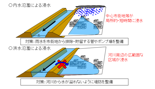 また、葛飾区ハザードマップには、「内水氾濫」も記載されています。