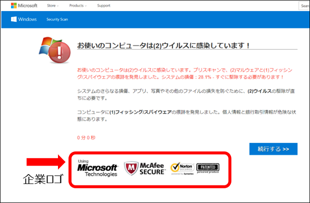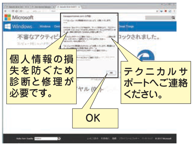 また、「サポートの連絡先」と表示されている電話番号には連絡しないでください。