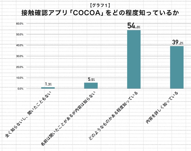 アンケートでは、まずCOCOA の認知度について聞いた。その結果、ほとんどの回答者が「どのようなものかある程度知っている」「内容を詳しく知っている」と回答した【グラフ1】。