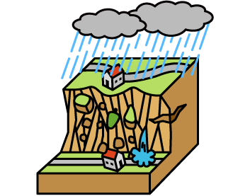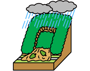 ・急な斜面が雨水の浸透や地震などの影響によって、突然崩れ落ちる現象です。