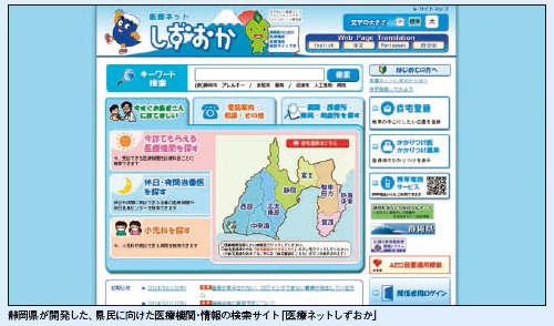 「FUJISAN」に入力されている情報で特長的なのが、災害拠点病院や医療救護病院ほか、人工透析機関や感染症指定医療機関、社会福祉施設などの医療施設情報が充実している点だ。もともと静岡県は住民向けに「医療ネットしずおか」を立ち上げるなどネットによる情報共有が進んでいた。「医療ネットしずおか」は厚生労働省の広域災害救急医療情報システム(EMIS)に参加しており、さらに県独自の情報として人工透析機関状況などを付加していた。2013年の同ネットのリニューアルに伴い、EMISの情報を「FUJISAN」に提供することを決定(ただし閲覧のみ。入力は不可)。その際に人工透析機関状況などの独自機能は「FUJISAN」に移設した。