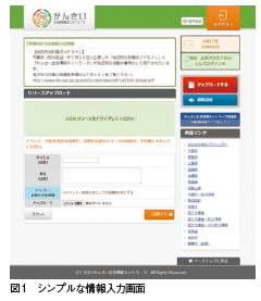 あえて入力用のテンプレートなどは設けず、テキスト、Word、PDFファイルのほか画像、動画ファイルなど、基本的にどのようなデータファイルでもドラッグ・アンド・ドロップだけで入力でき、クラウド上にデータベース化されるようにした(図1)。通常のシステムであれば「見出し」「本文」などを別々に入力していくが、「お互いに信頼関係があることを前提に、被災時の入力者の負担軽減を第一に考えてこのようなシステムにした」という。開発の工程で「見出しや内容が一目で分かるようにした方がいいなど、様々な議論があったが、現在のところは、誰もが使えるシステムにすることを優先させている」と、システム開発を担当したスマートバリュー公共クラウドディビジョンの原口氏は話す。ただし、協議会ではどのようなリリースの形式にすれば報道機関が見やすいかなど、定期的に意見交換会を開いており、可能な範囲で改善が図られているという。