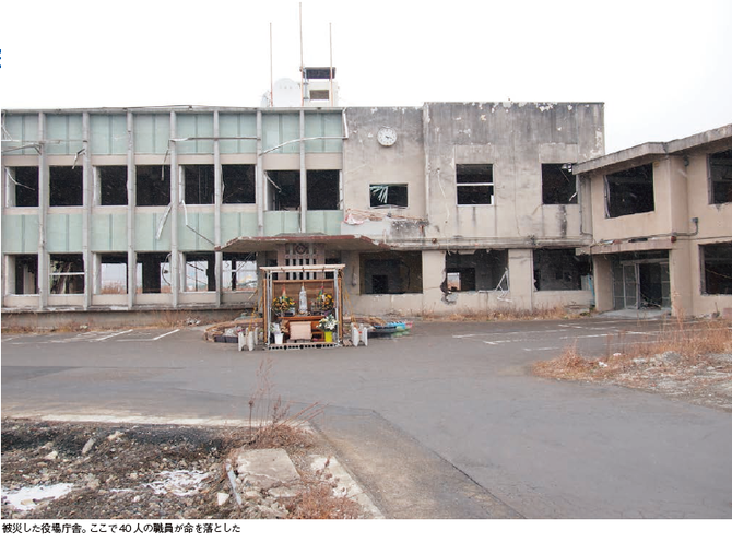 現在町の職員は247人。このうち正職員が129人で、残りは他の自治体からの派遣職員だ。震災で町長を含む40人が命を落とし、職員数が圧倒的に不足する中、外部からの支援を受けながら復興事業を進めてきた。町の予算は被災前の50億から1100億円へと跳ね上がった。ハード面での復興事業を主に担当する復興局都市整備課には37人の職員がいるが30人が派遣職員。パート職員を除いた4人が正職員で、年齢も20~30代と若い。埼玉県川口市から派遣されている企画推進班の阿部保幸氏は「職員数があまりに少ない」と嘆く。用地買収を含めると年間300億円もの予算を使わなくてはいけないが、「他の自治体なら1人でこなすのが1億円程度。単純計算すれば300人、仮に2億円分の仕事をしても150人は必要」と説明する。