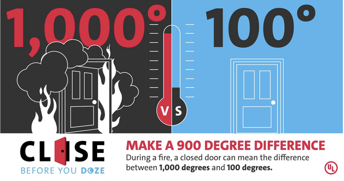 下記のビデオはUL Firefighter Safety Research Institute(UL消防士安全性研究所)の実験映像であるが、検証データとともに「寝る前にはドアを閉めることで、就寝中、寝室のドアが防火戸的な役目を果たすため、一定時間の延焼防止と一酸化炭素の寝室内への充満を遅くし、消防隊が到着するまで、やけどや一酸化炭素や有毒ガスによる窒息事故、火災熱による気道熱傷から赤ちゃんや高齢者、障がい者など、自力避難できない家族を守ることができる可能性が高い」ことを証明している。