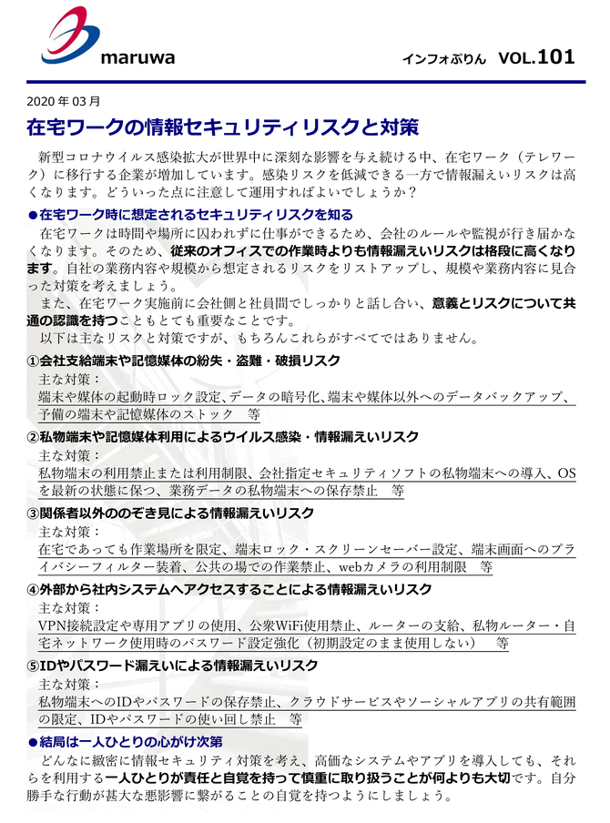 3月●在宅ワークの情報セキュリティーリスクと対策