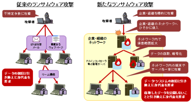 新たなランサムウェア攻撃は、攻撃者の主な目的が金銭である点は変わらないものの、従来型と比較して、