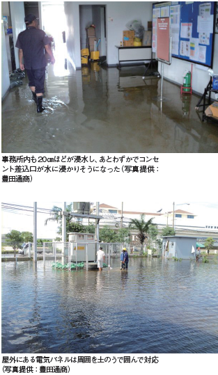 2011年にタイ北部・中部を襲った大洪水では、バンコク市内や7つの工業団地に被害が及び、日系企業約450社が被災したと報じられている。2年後の2013年10月にも再び大規模な洪水が起き、2011年時に被害を逃れたタイ最大規模のアマタナコーン工業団地が浸水するなど、再び甚大な被害が発生した。