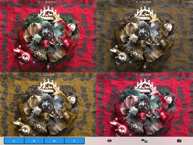 CUDOでは色弱者という呼称を使っているそうなのですが、実態をお聞きしたら、「弱」でいいの?と思ってしまいました。例えば、95%を占める多数派のC型の人は、緑の葉の中に紛れた赤い実をすぐ見分けられます。