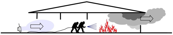 正圧戦術(Positive Pressure Attack:PPA)は、消火作業を行う前に機械的に陽圧換気ファンを用いて活動隊員と要救助者の視界を作り、室内の温度を下げるほか有毒ガスや煙を除去し、救助活動を有利な条件にするための屋内戦術の1つの手段で、米国では1926年から行われています。