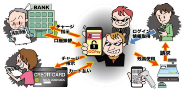 スマホ決済用残高をチャージするために銀行口座とスマホ決済サービスを連携する際や、口座振込を利用して銀行口座からスマホ決済サービスへチャージする際の振込者に対する本人確認方法に不備があると、それを悪用されて銀行口座から不正に預金を使用される。