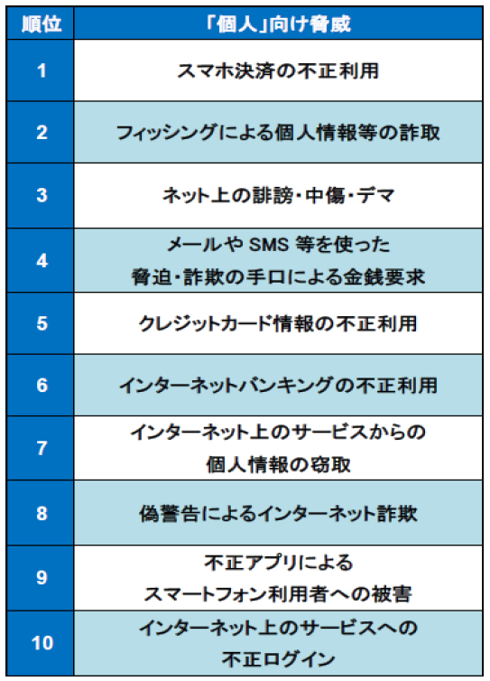 「情報セキュリティ10大脅威2021」の第1位は「スマホ決済の不正利用」でした。