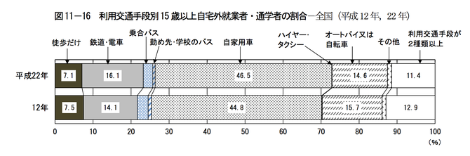 この、「災害時の移動手段として重要な自転車」というキーワードに、自転車好きとしては、やっと日の目を見た思いが♪ただ、まだ津波での避難ということでは、自転車の話題は少ないのかなという思いです。ところで、実際に全国で自転車を通勤や通学に使っている人はどれくらいいるかというと、