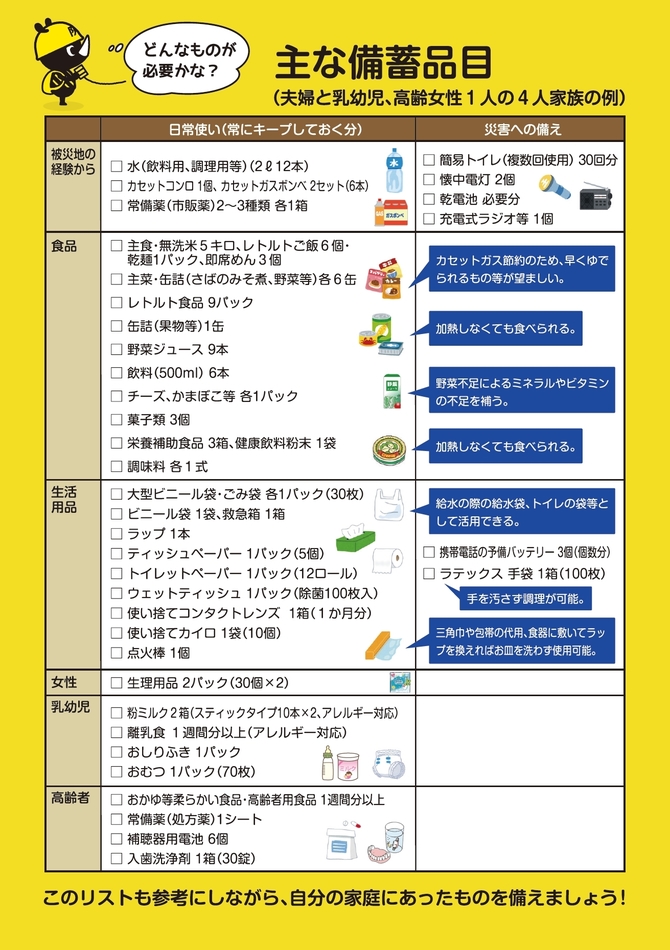 東京都では11月19日を「備蓄の日」に定めている。年に1度は、家庭でぜひとも備蓄について話し合い、見直してほしい。