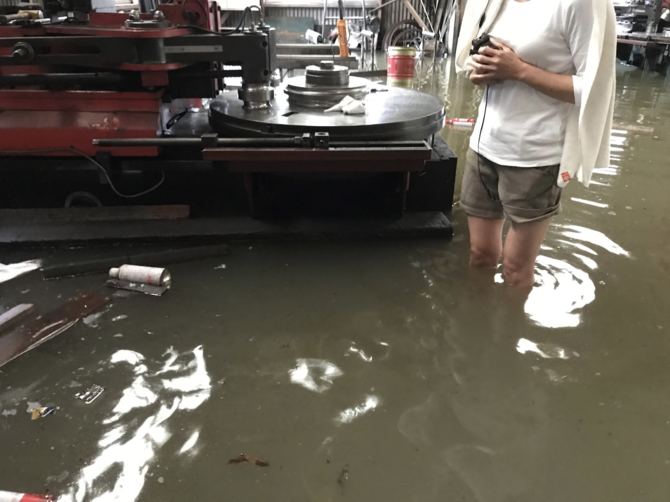 従業員総出で泥を洗い流したが、機械メーカーの修理にも時間がかかり、復旧までに少なくとも2カ月が必要だった。その後も機械に漏電がたびたび発生し、正常に稼働できず苦しめられたという。被害金額は「売り上げベースで数千万の規模になりました」と話す。そこで浸水対策の立て直しを図ったのだ。