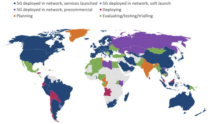 最新のデータでは、全世界(72カ国)で176の商用5Gネットワークが展開されています。5Gとは、第5世代移動通信システムの略語です。