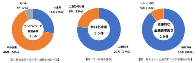 被害件数(61件)の内訳は、大企業17件、中小企業40件であり、その規模を問わずに被害が発生しています。