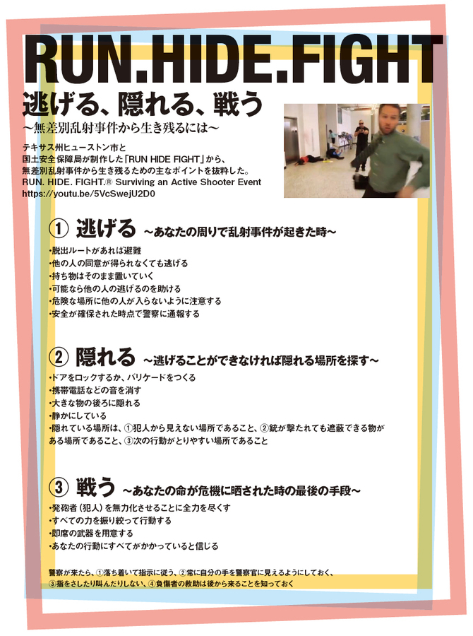 3、RUN. HIDE. FIGHT.® Surviving anActive Shooter Event (米国土安全保障省)